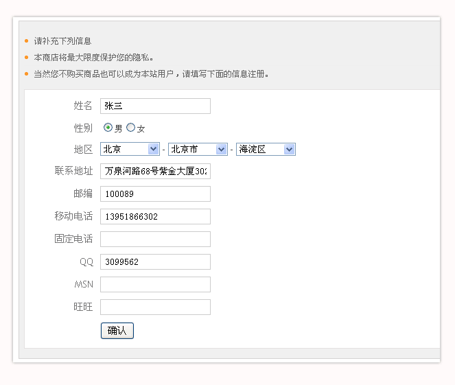 ,請完善您的個人信息,方便購物后我們能更好的與您聯(lián)系。