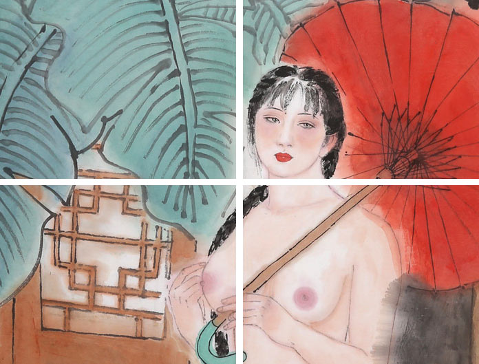 他的寫意人物畫以“以形寫神”,融合中西藝術(shù)元素,兼取南北技法之長,形成了雄中寓秀的藝術(shù)品格。他筆下的仕女多有由“媚”見性的慧心,強(qiáng)調(diào)人心柔媚的通感,將素描的明暗和傳統(tǒng)的虛實(shí)糅合在筆墨線條的傳統(tǒng)審美情趣中,重構(gòu)了中國仕女畫的筆墨意趣。是十分難得的收藏佳作。