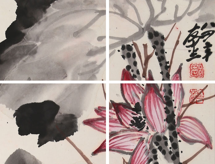 友蒸先生筆下之山水,深弘靜穆,古意盎然,頗具宋明之風(fēng); 花卉翎毛果蔬魚藻,靈秀飄逸,神氣閑雅,力追八大、吳昌碩等。而以筆簡(jiǎn)神肖之麻雀引領(lǐng)諸寫意小品,生氣勃勃,莊諧可人,世譽(yù)“鄒麻雀”。其麻雀畫技法,被列入世界非物質(zhì)文化遺產(chǎn),《雀陣圖》入編世界吉尼斯紀(jì)錄。