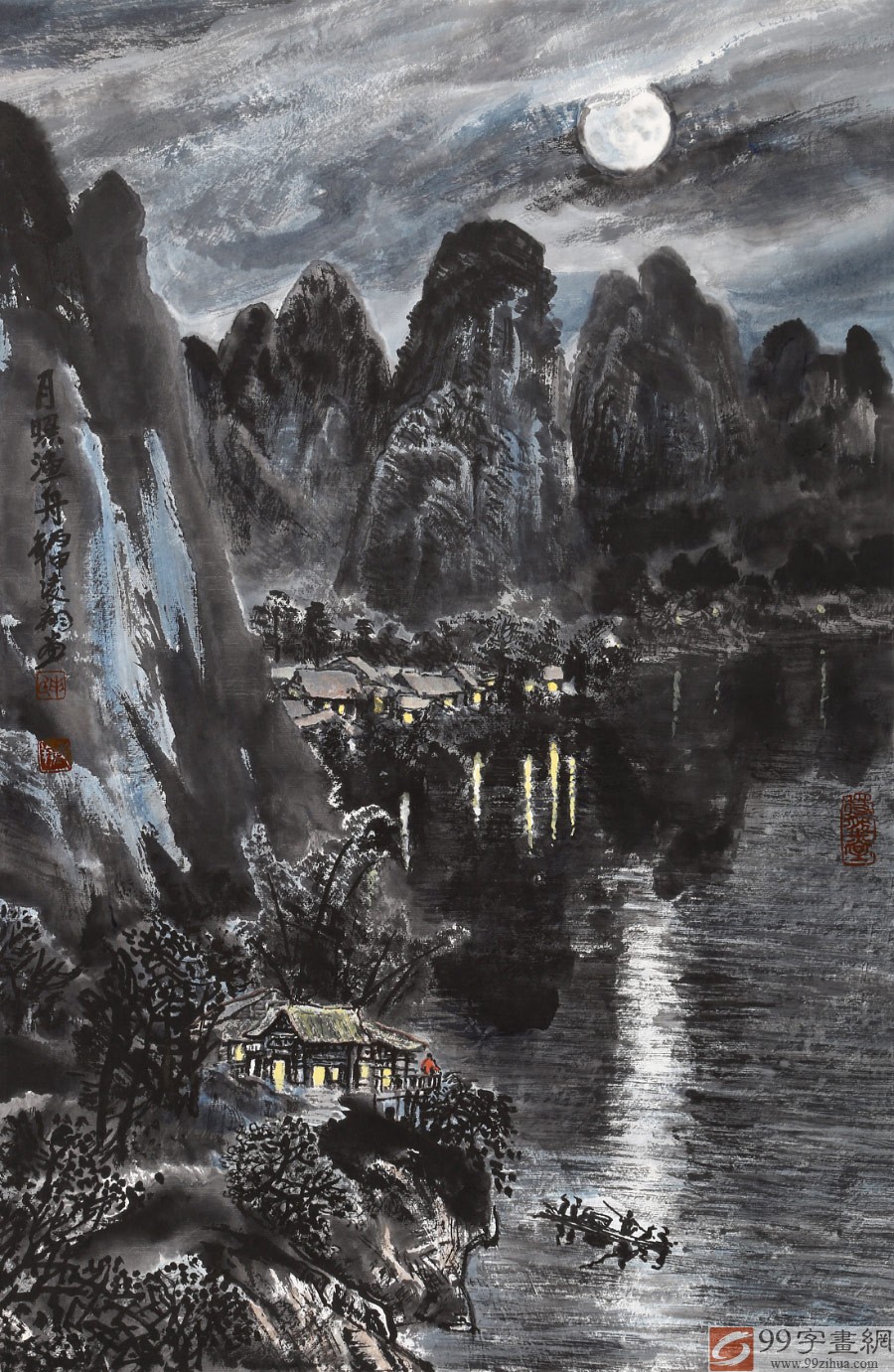 申凌翔,男,1953年生。五歲習畫,后拜師于李可染弟子唐緒祥(清華大學美術(shù)學院教授),主攻山水畫,注重寫生,其夜景山水,意境靜謐優(yōu)美、具有非常鮮明的藝術(shù)風格,為畫界推崇,是公認的漓江夜景山水畫的名家。數(shù)十年來,申先生除了外出寫生,很少出門,苦心作畫,少與外界接觸,因而保留了一些原始的特質(zhì),在社會日趨同化的今天,藝術(shù)家能保存一份純真,實在難能可貴。