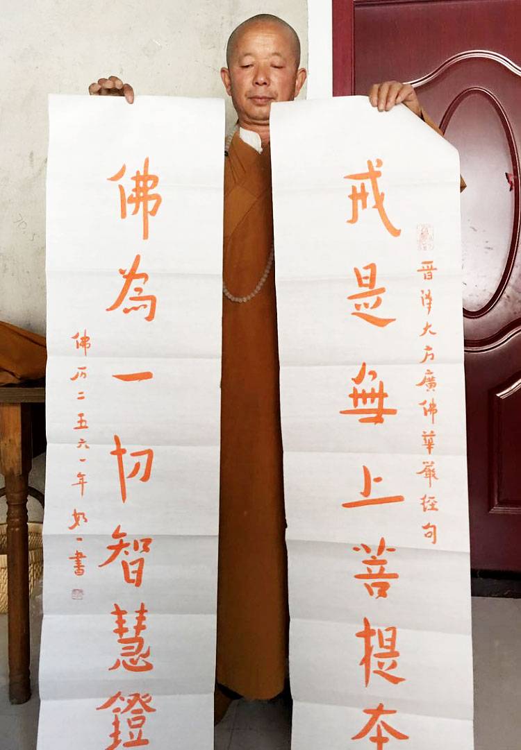 出家后發(fā)菩提心,參訪學(xué)道,自度度人,致力人間佛教,以其在家時修的一定的書法功力,抄經(jīng),書法,篆刻,成為其修行的一部分,發(fā)愿依其所能,廣結(jié)佛緣。法師一生云游四方,倡導(dǎo)人間佛教,眾善奉行,諸惡莫作,其書法藝術(shù)古樸優(yōu)美,已入化境,如一法師愿以此,弘揚佛法,廣結(jié)善緣,護佑三寶,祈求天下天平,萬民安康。
