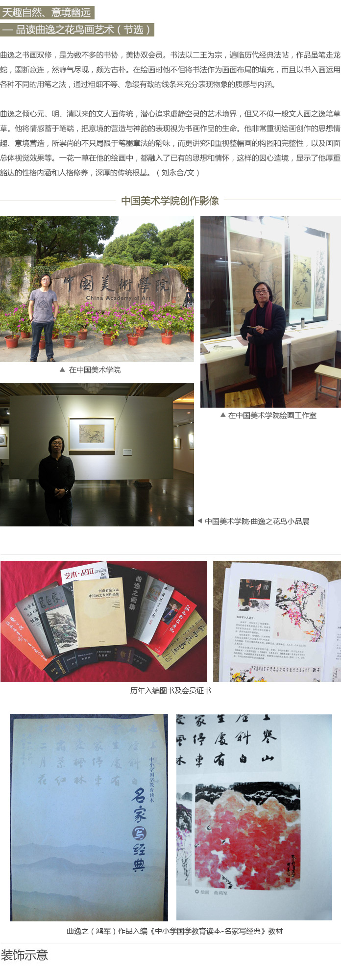 曲逸之,別署逸碩居,一九七二年生于河南偃師?,F(xiàn)為河南省美術(shù)家協(xié)會會員、河南省書法家協(xié)會會員、河南省國畫家協(xié)會會員、河南省花鳥畫研究 會會員、河南省學(xué)術(shù)技術(shù)帶頭人,洛陽市有突出貢獻(xiàn)專家、洛陽市政府特邀書畫家,是洛陽市美術(shù)家協(xié)會主席、洛陽市博物館館長王繡的得意門生。