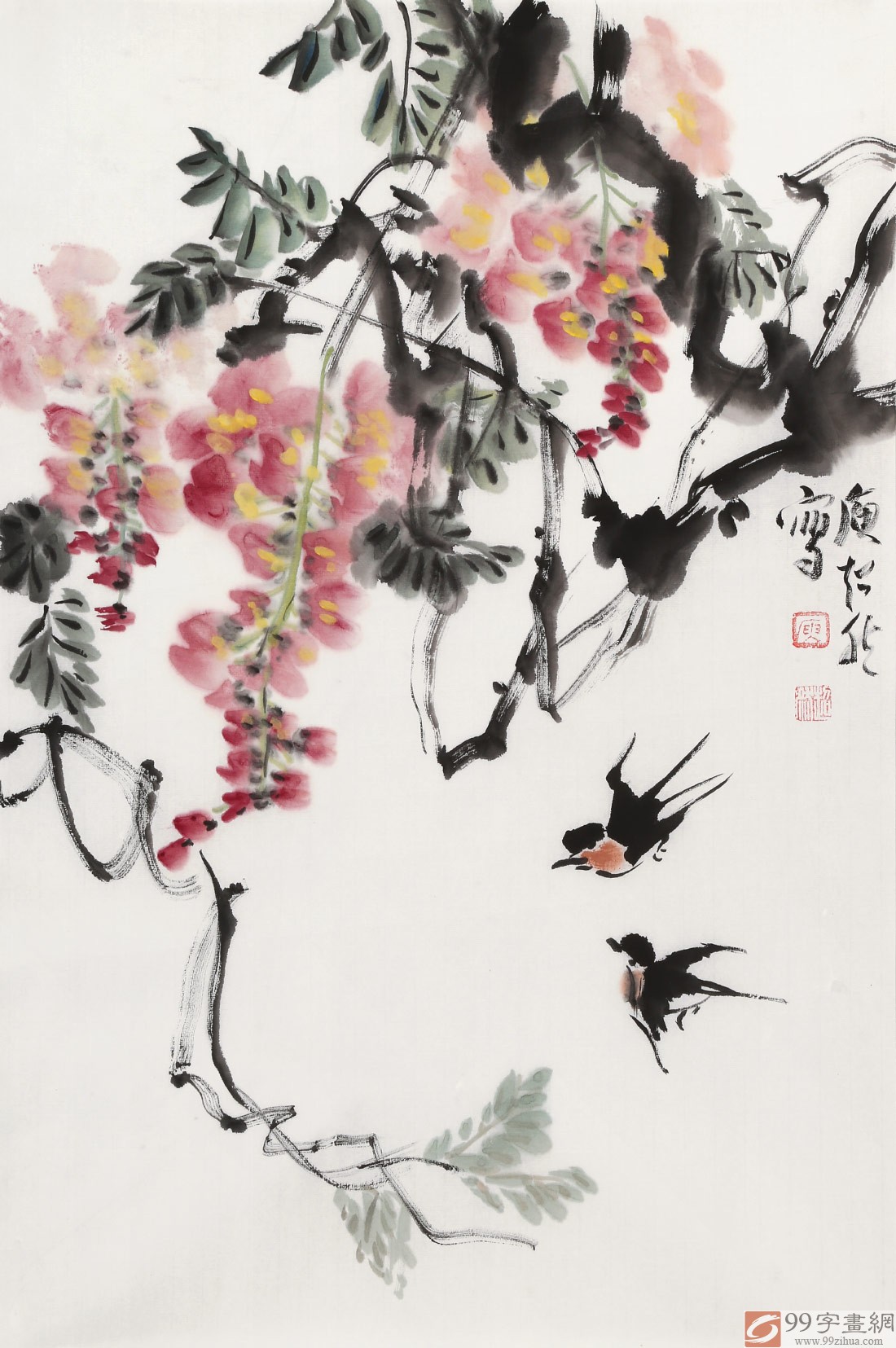 【作品簡評 】 觀庾超然的花鳥畫、人物畫,有清和雋永之氣,而無邪甜庸俗之習(xí),追其原因,即從正格入 ,以雅逸出,于法度中,尋求傳統(tǒng)精華,于超邁中下切實(shí)功夫。他的花鳥畫,能給人明朗、清新、簡練 、生機(jī)勃勃之感,達(dá)到了形神兼?zhèn)洹⑶榫敖蝗诘木辰?。事?shí)上,在庾超然的作品中,常常是詩、書、畫 、印的結(jié)合,顯示出一種韻致悠然的綜合性美感。