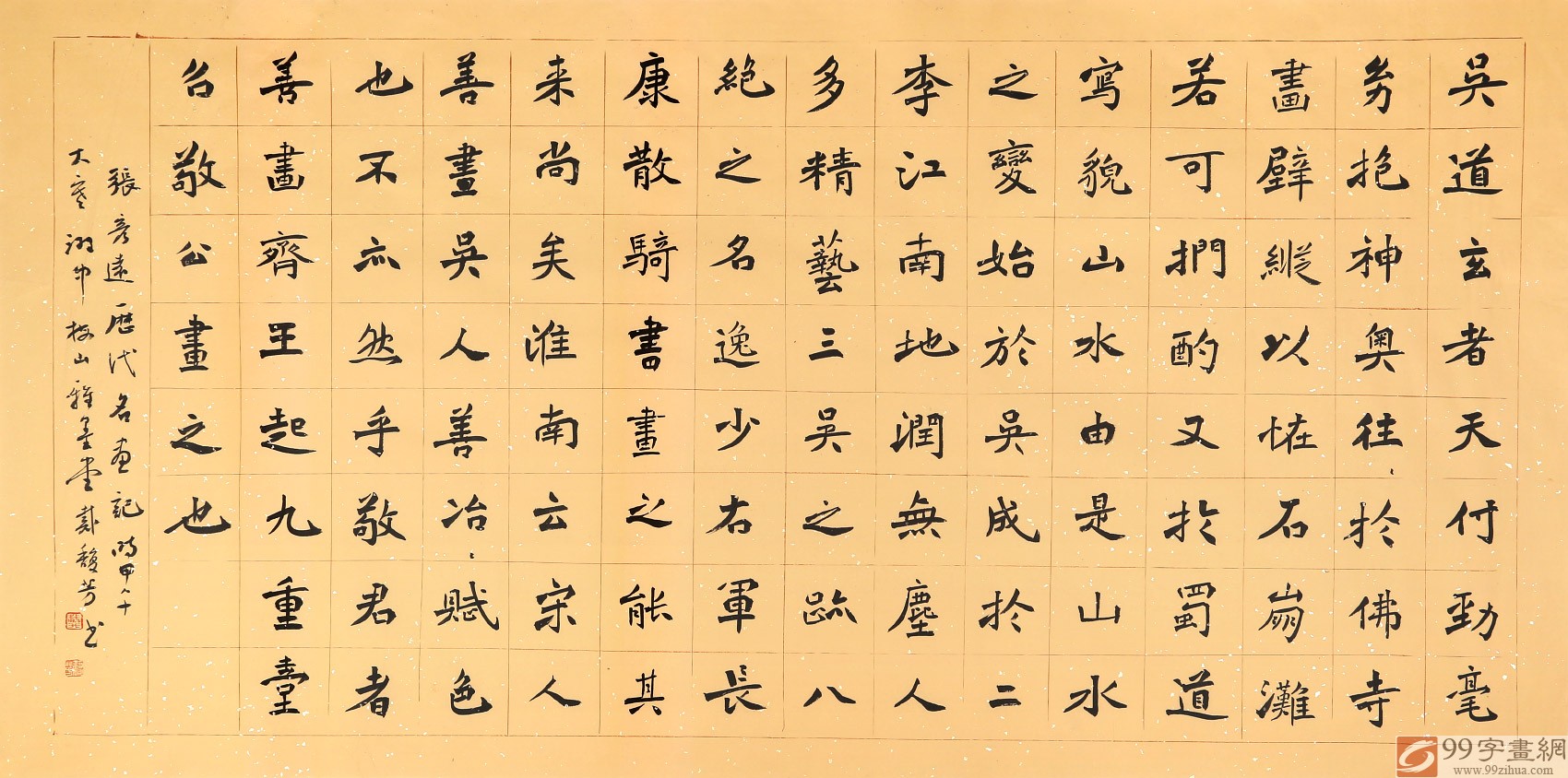 唐代張彥遠(yuǎn)《歷代名畫記》:“吳道玄者,天付勁毫,幼抱神奧,往往于佛寺畫壁,縱以怪石崩灘,若可捫酌,又于蜀道寫貌山水。由是山水之變,始于吳,成于二李。江南地潤(rùn)無(wú)塵,人多精藝,三吳之跡,八絕之名,逸少右軍,長(zhǎng)康散騎,書畫之能,其來(lái)尚矣。淮南云,宋人善畫,吳人善冶(冶,賦色也),不亦然乎。齊敬君者,善畫。齊王起九重臺(tái),召敬君畫之也?!?/p>