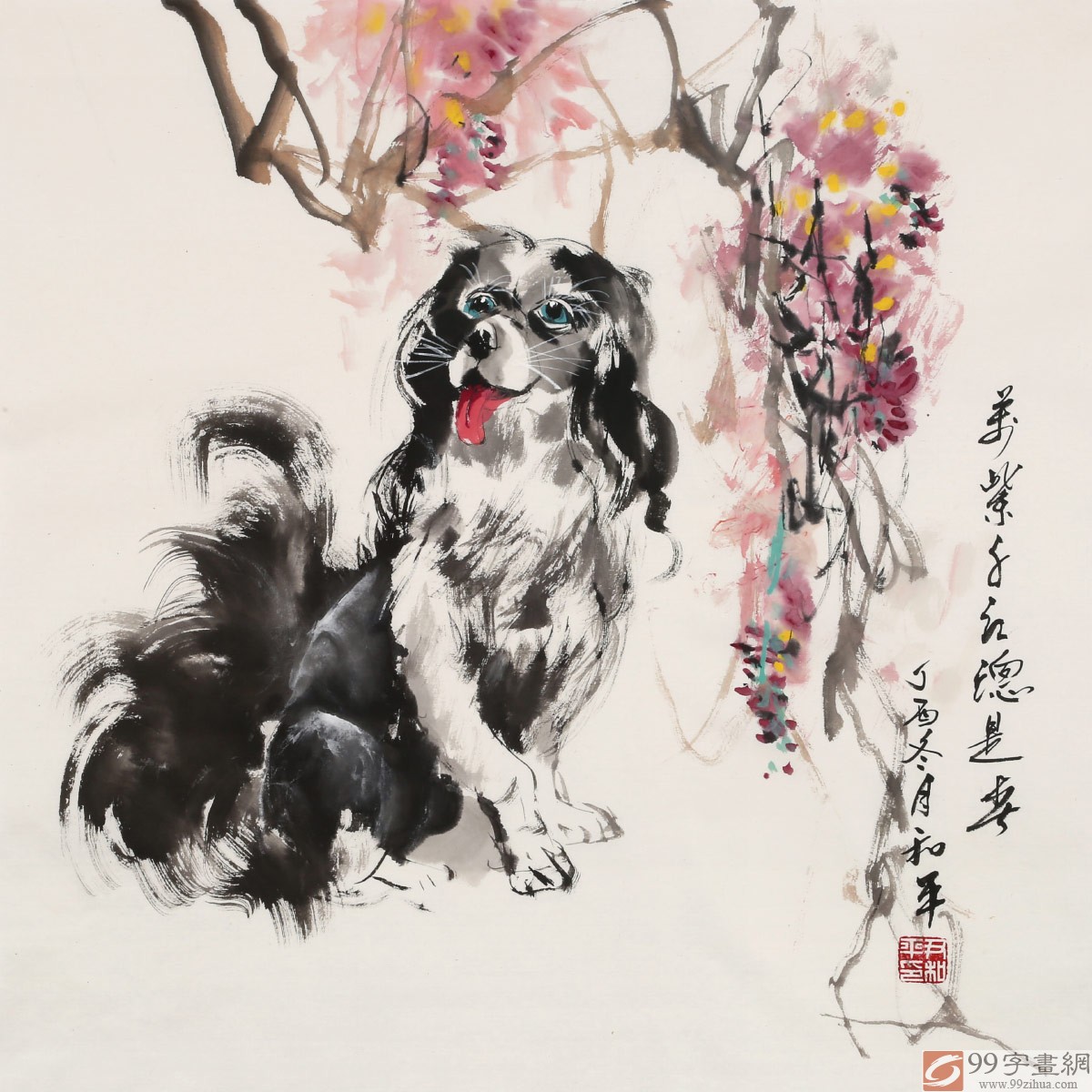 【藝術簡評】2018,戌狗祈福。古人認為,狗除了有預兆吉兇災異的象征作用以外,還有除災賜福招財?shù)淖饔?。狗一直被視為吉利的動物,狗的叫聲也諧音“旺”,其寓意吉祥,被人們視為財富來臨的前兆,民間有俗語說,“狗來福,錢入庫”。