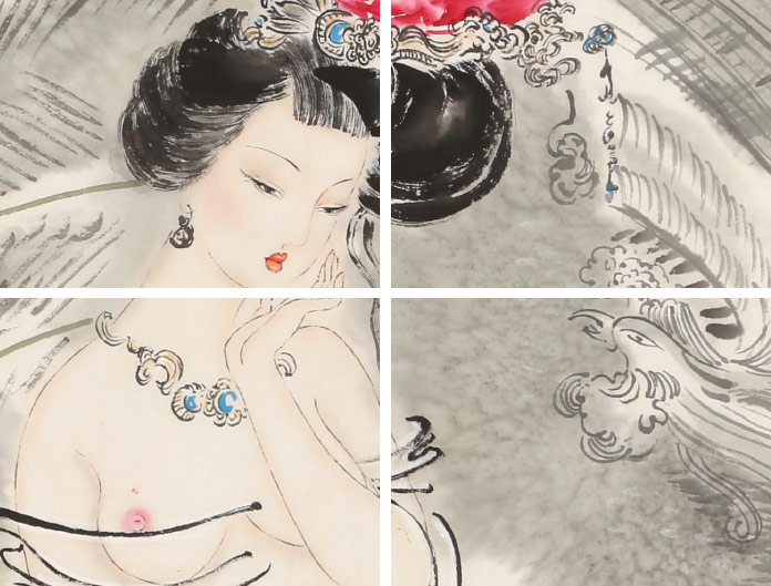 其仕女畫作品,風(fēng)格清新俏麗,畫中人物婀娜多姿,用色淡雅簡(jiǎn)約,人物神態(tài)刻畫的極有韻味,具有極高的欣賞和收藏價(jià)值。