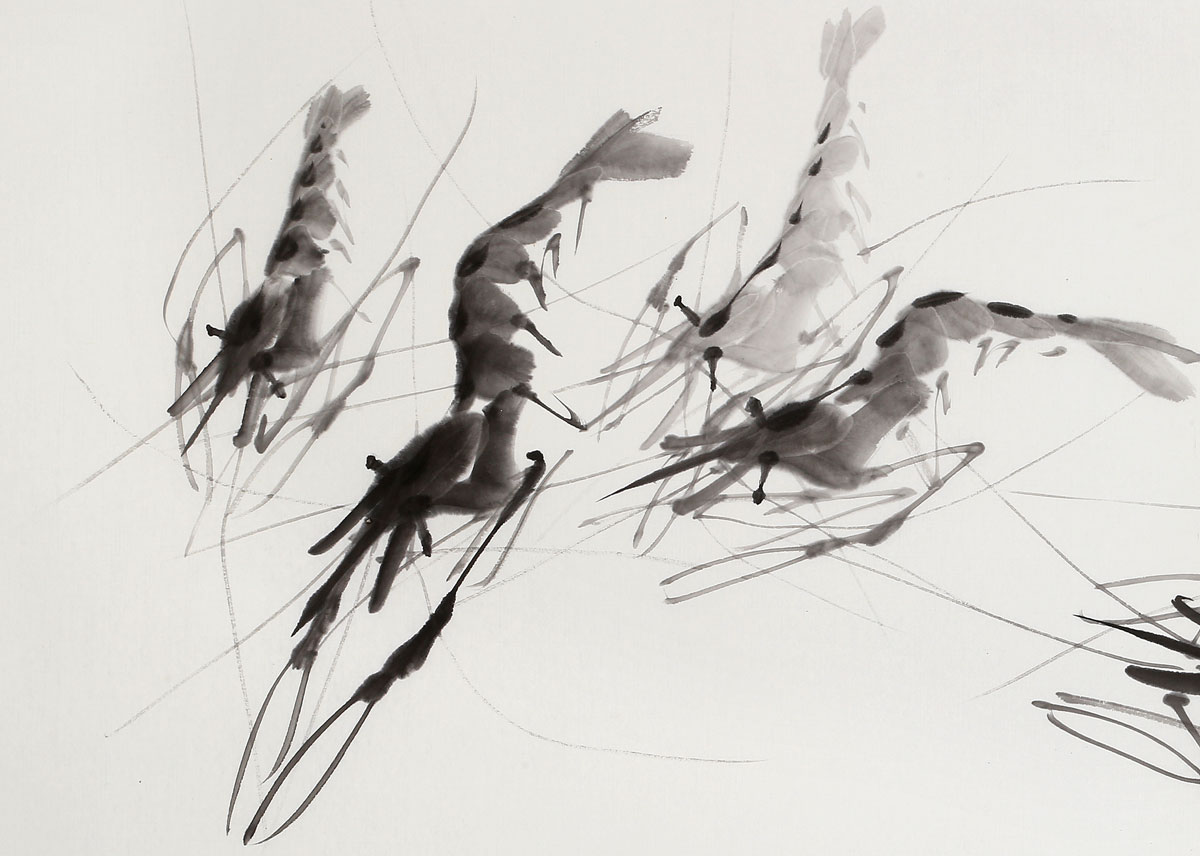 孫海峰的鯉魚(yú)畫(huà);以魚(yú)為師,得形入神。他的作品以工筆和寫(xiě)意相間,筆墨勁挺流暢,色彩明潔秀麗。其畫(huà)的魚(yú)靈動(dòng)活潑,栩栩如生,神韻充盈,筆墨老到。取材來(lái)自于生活卻又超越生活。大膽概括簡(jiǎn)化,純墨色的構(gòu)圖也有著豐富的意境,顯示出畫(huà)家高超的藝術(shù)功力。