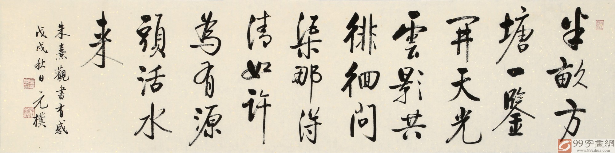 半畝方塘一鑒開,天光云影共徘徊。問(wèn)渠那得清如許?為有源頭活水來(lái)。本幅書法適合辦公室、客廳書房懸掛。