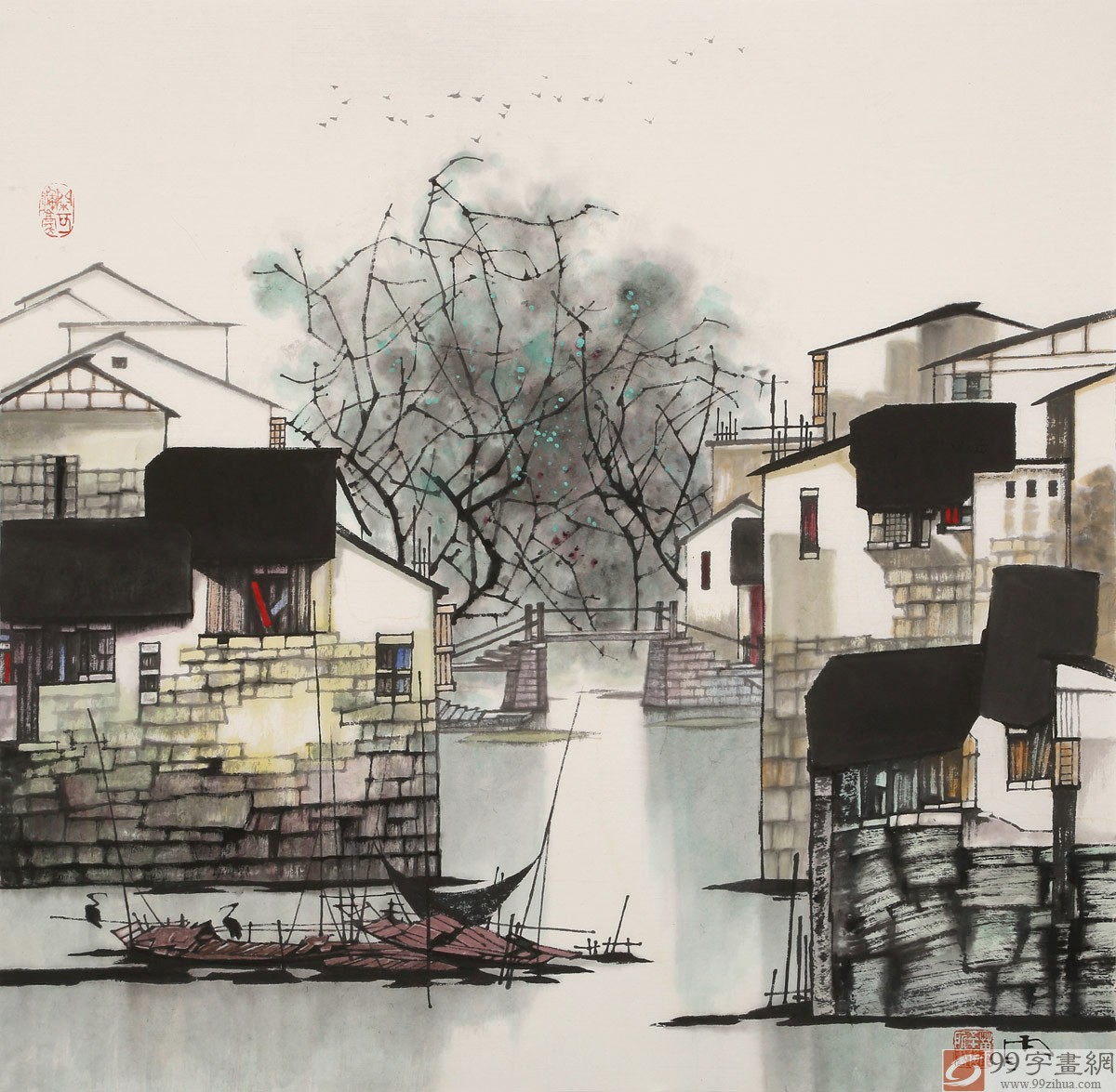 【作品簡評】苗雨的繪畫吸收了石濤、八大、以及當(dāng)代吳冠中等大家的畫法并借為己用,他的筆墨潑辣大氣,大開大合,元?dú)饬芾?,但又絕無江湖縱橫習(xí)氣,收放有度,苗雨巧用了宋人繪畫筆法的細(xì)致,使得他筆下的山水或花鳥充滿著祥和和寧靜,又充滿了生命的張力。他大膽融進(jìn)西方油畫的技法,特別是在用色方面有著他獨(dú)到的見解,從而使整個畫面有一種朦朧、迷離的效果,把中西方繪畫技藝巧妙的結(jié)合起來,形成了自己獨(dú)特的藝術(shù)風(fēng)格。