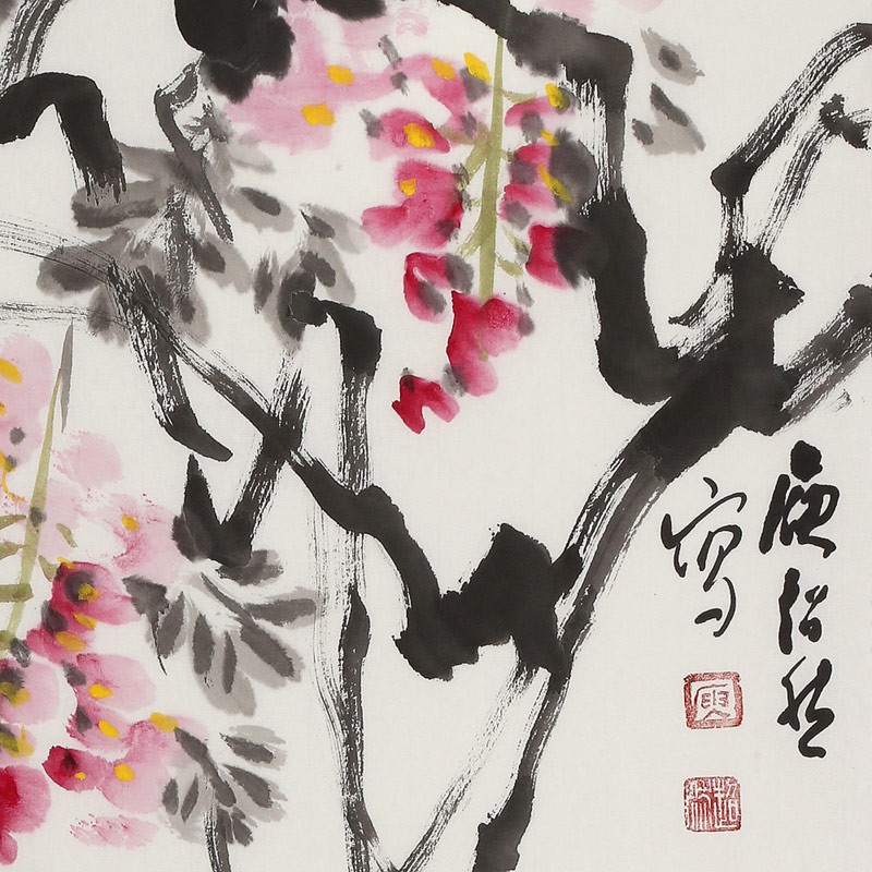 【作品簡評 】 觀庾超然的花鳥畫、人物畫,有清和雋永之氣,而無邪甜庸俗之習(xí),追其原因,即從正格入 ,以雅逸出,于法度中,尋求傳統(tǒng)精華,于超邁中下切實(shí)功夫。他的花鳥畫,能給人明朗、清新、簡練 、生機(jī)勃勃之感,達(dá)到了形神兼?zhèn)洹⑶榫敖蝗诘木辰?。事?shí)上,在庾超然的作品中,常常是詩、書、畫 、印的結(jié)合,顯示出一種韻致悠然的綜合性美感。