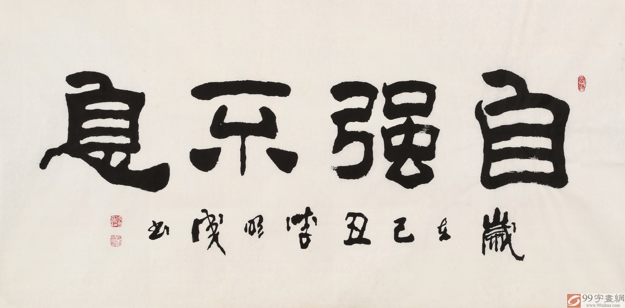 【作品簡評】 “天行健,君子以自強不息”“地勢坤,君子以厚德載物”兩句意謂:天(即自然)的運動剛強勁健,相應于此,君子處世,應像天一樣,自我力求進步,剛毅堅 卓,發(fā)憤圖強,永不停息;大地的氣勢厚實和順,君子應增厚美德,容載萬物。譯為:君子應該像天宇一樣運行不息,即使顛沛流離,也不屈不撓;如果你是君子, 接物度量要像大地一樣,沒有任何東西不能承載。