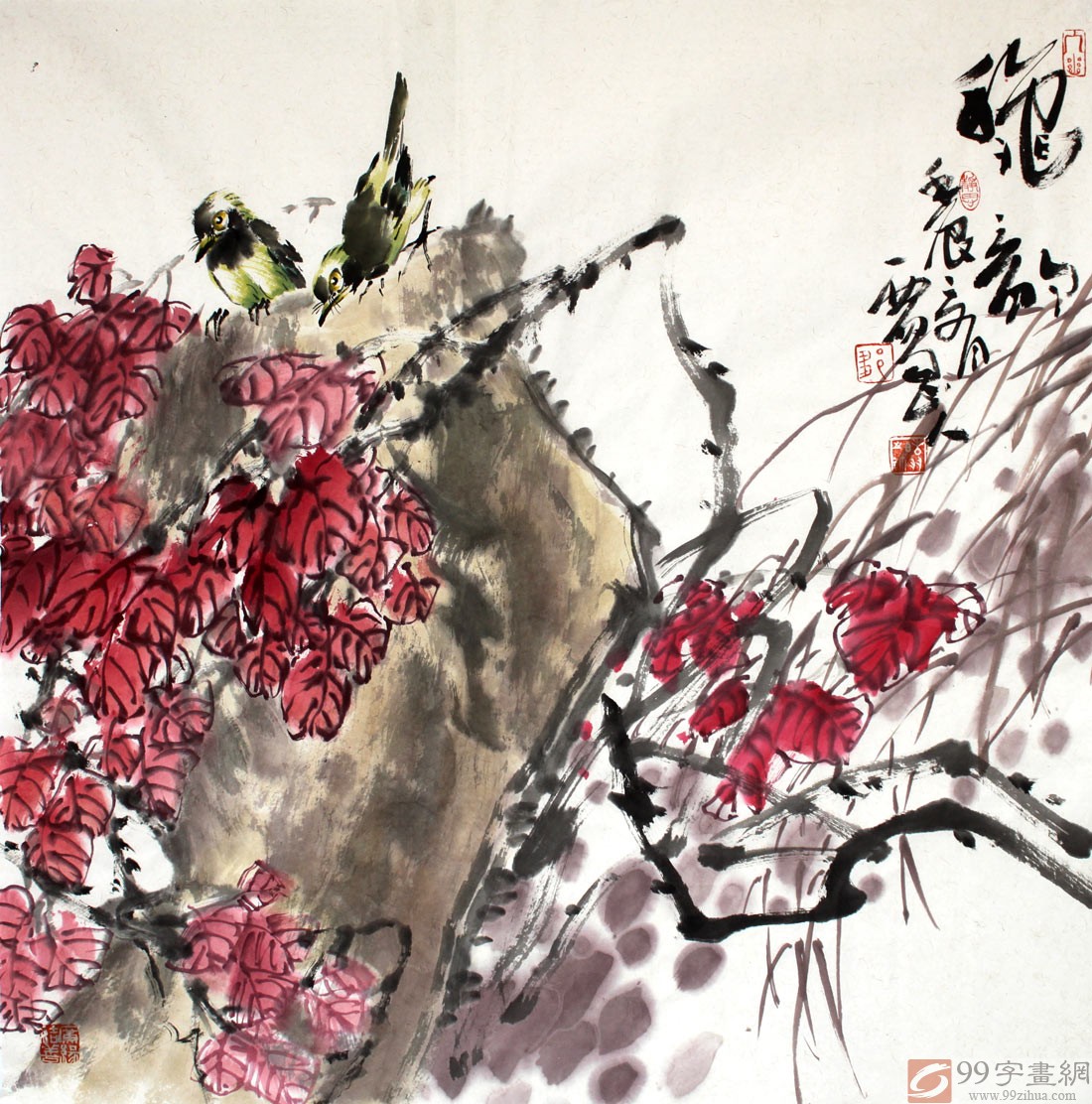 其繪畫崇尚自然和諧之美,追求天人合一,妙境逸品,善于采擷大自然中最生動、最有生命力的東西加以刻畫表現(xiàn),并將自然界中的花草、 禽鳥、 魚蟲在思維中集中強化,使其更突出典型,讓畫面給人以更多的聯(lián)想空間。其用筆追求大開大合,酣暢淋漓。