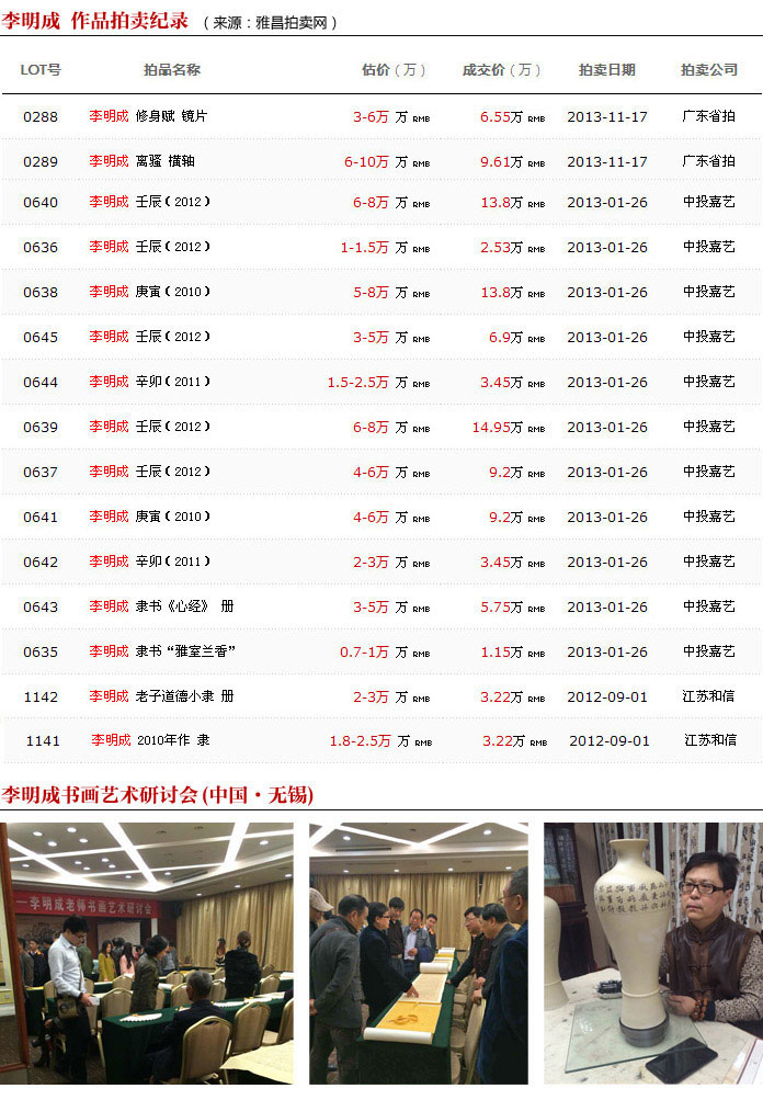 李明成主要書畫作品市場態(tài)勢