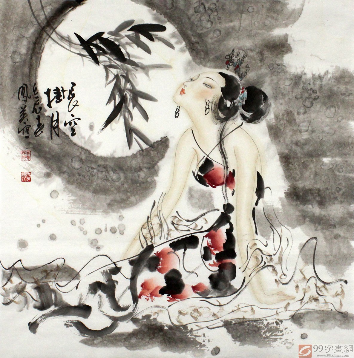 【作品簡(jiǎn)評(píng)】(99字畫網(wǎng)藝術(shù)評(píng)論員劉依娜)李鳳英的寫意仕女圖細(xì)而纖媚,格調(diào)艷雅,在人物衣褶描繪上借鑒了古代壁畫的傳統(tǒng),尤其是色彩調(diào)配淡而不俗,磊落大方。中國(guó)許多仕女人物題材歷代都有精品問世,《長(zhǎng)空掛月》這一幅有吉祥寓意的題材在女性畫家李鳳英的作品中出現(xiàn),她在借鑒古代傳統(tǒng)的基礎(chǔ)上自出新意,洗去鉛華,畫中多用墨色做背景,以很好地突出主體人物。仕女造型秀美、神態(tài)生動(dòng),仿佛一切都沉浸在美妙畫面之中,,達(dá)到了畫意、形象的和諧統(tǒng)一。