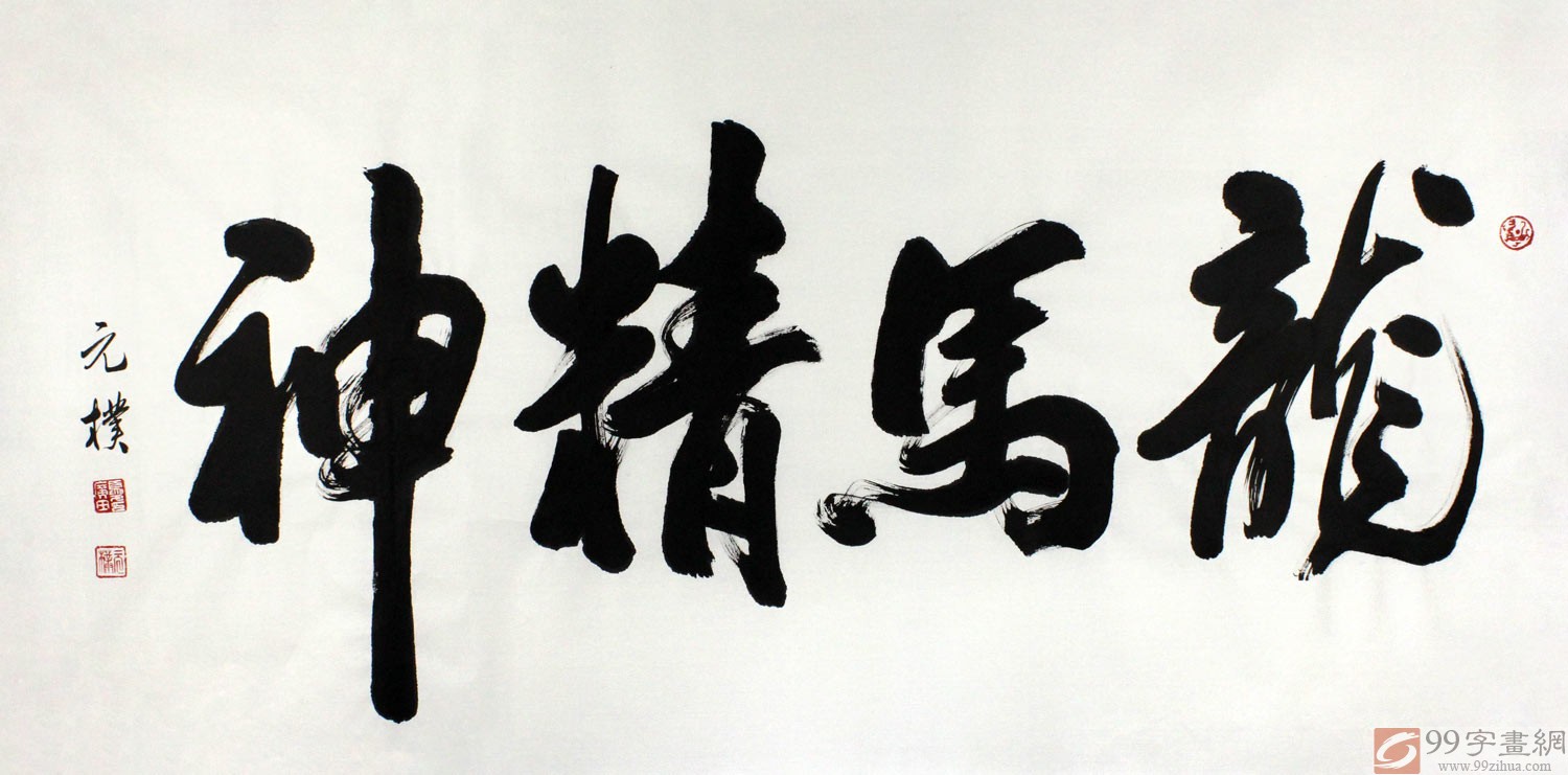【作品簡(jiǎn)評(píng)】(99字畫網(wǎng)藝術(shù)評(píng)論員玉潔) “龍馬精神”是中華民族自古以來(lái)所崇尚的奮斗不止、自強(qiáng)不息的進(jìn)取、向上的民族精神,是炎黃子孫的化身,代表了華夏民族的主體精神和最高道德。同時(shí),龍—天子—慈父,馬—媽媽—圣母,潤(rùn)澤大地,上善若水,任勞任怨,孕育著千千萬(wàn)萬(wàn)華夏兒女,天地之間生萬(wàn)物,父母情深有你我,這四字成語(yǔ)情系每一個(gè)人的心靈,內(nèi)涵深刻,激勵(lì)人們奮發(fā)進(jìn)步,是客廳、辦公室精品書法選擇!