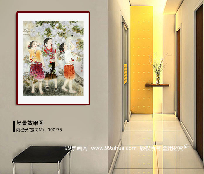 【作品簡評】(99字畫網(wǎng)藝術(shù)評論員玉潔)趙逸梅老師的這幅人物畫作,著重以人物為描繪對象,展現(xiàn)出人物的外貌形態(tài)、氣質(zhì)神韻等特點。此幅作品描繪花絮飄揚,三位少女賞景的畫面,一只彩蝶飛來,一少女捉碟的動作過程,帶有濃郁的現(xiàn)代文化氣息,同時也反映了改革開放后的今天陽光的少女的精神面貌,整幅畫面構(gòu)圖飽滿,形象生動,帶給人強烈的視覺沖擊。是客廳字畫、臥室字畫之選,推薦選購!