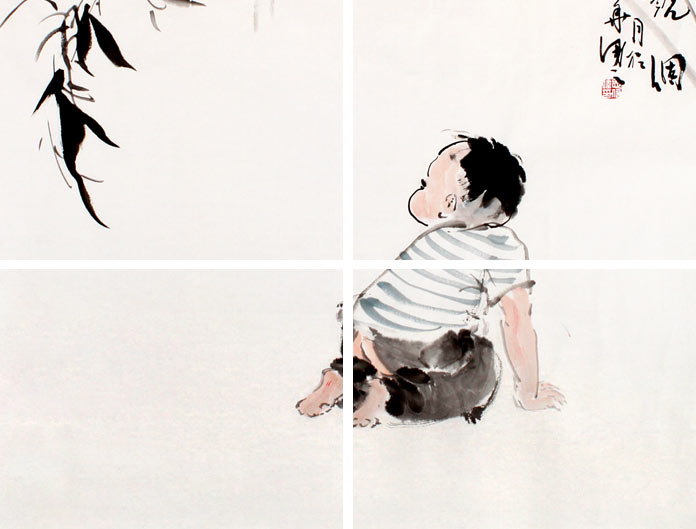【作品簡(jiǎn)評(píng)】(99字畫(huà)網(wǎng)藝術(shù)評(píng)論員曉曼)此幅童趣國(guó)畫(huà)《吱吱喳喳說(shuō)個(gè)啥》,繪一幼童半趴于地上,仰頭觀望高處竹桿上的鳥(niǎo)兒,鳥(niǎo)兒吱吱喳喳叫個(gè)不停,吸引了地上的幼童,竹葉稀稀落落,竹竿勁節(jié)有力,節(jié)節(jié)高升。整幅畫(huà)作構(gòu)圖巧妙,富含創(chuàng)新技法,將童趣的天真、無(wú)憂無(wú)慮表現(xiàn)于畫(huà)幅中,墨韻酣暢,功底深厚,掛于墻面定會(huì)增添別具的風(fēng)采。
