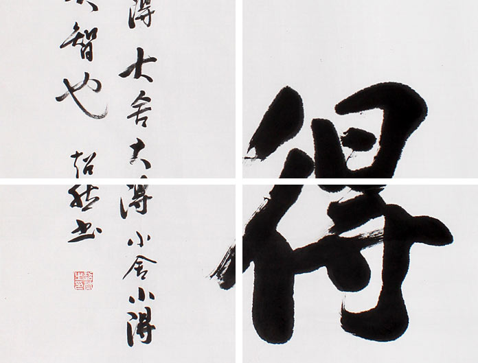 【作品簡(jiǎn)評(píng)】庾超然先生的這幅書法作品《舍得》,結(jié)構(gòu)嚴(yán)謹(jǐn),古樸無(wú)華,不刻意求工而流露出恣肆奔放之感,其字極為放縱舒展,體勢(shì)如行云流水般自如,意態(tài)飄逸自然,筆力遒勁,氣勢(shì)渾厚,極具藝術(shù)魅力。